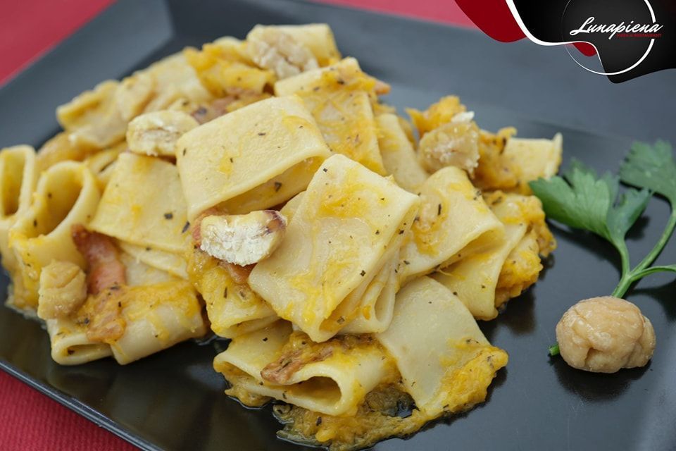 Al Ristorante Lunapiena l'amore per il cibo si unisce alla passione per la cucina di pesce e di carne. Ogni giorno, offriamo una vasta selezione di antipasti irresistibili, come l'antipasto Altamarea con insalata di mare, crostino, alici marinate, salmone, cozze e gamberone. I nostri primi piatti, come le linguine allo scoglio, gli gnocchi fatti in casa con crema di pistacchio, vongole e stracciatella, e la calamarata norvegese, vi faranno vivere un'esperienza culinaria indimenticabile. E non dimenticate di provare la nostra frittura di calamari croccanti, il baccalà fritto, la grigliata mista.